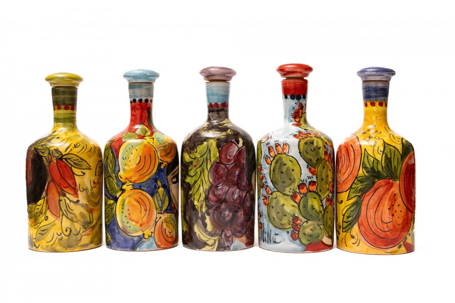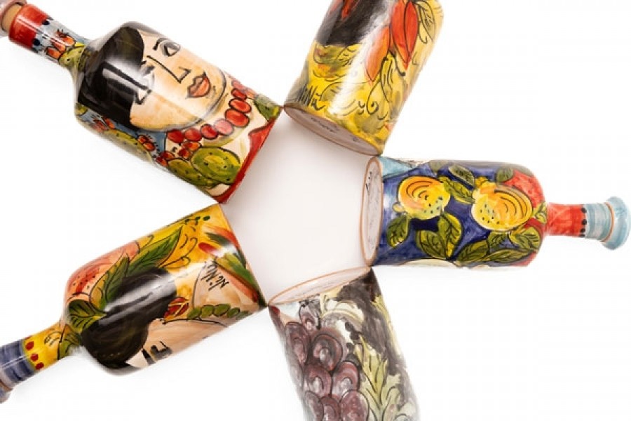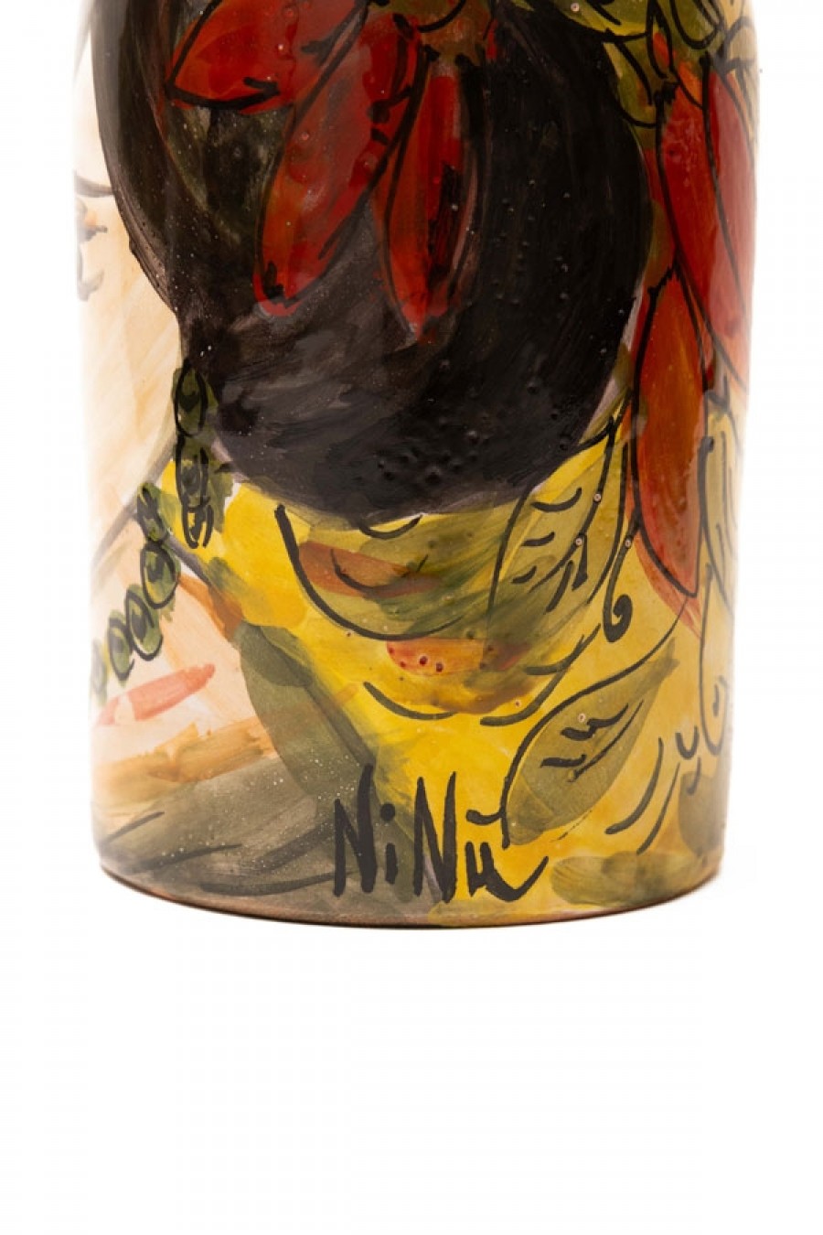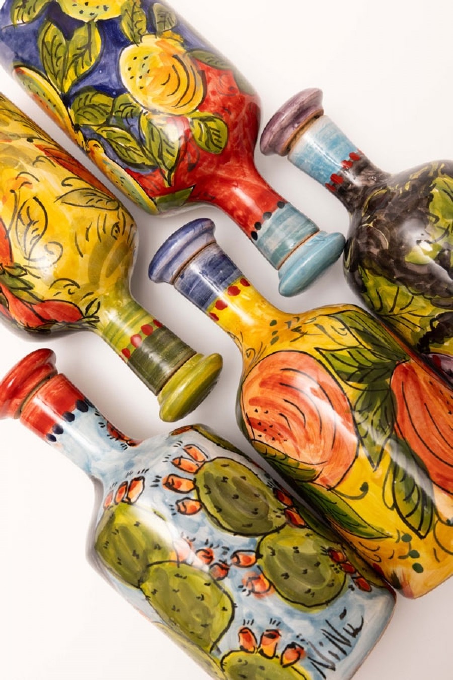 L'emozione organolettica del nostro Olio Angelicum Summa si fonde al coinvolgimento delle storie impresse nella ceramica artigianale dell'Artista NiNu'.